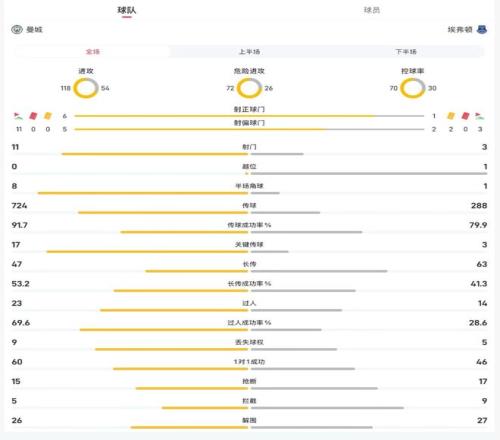雷速体育10月18日宣 在今晚结束的英超第八轮的一场比赛中,曼城2-0战胜埃弗顿。曼城前锋哈兰德本场比赛梅开二度,在前八轮英超中,哈兰德已经打进了11粒进球,效率非常惊人。埃弗顿方面,恩迪亚耶表现非常活跃,但没能帮助球队取得进球。格拉利什因租借回避原则,无缘出战曼城。