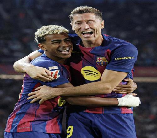 比赛一开始,双方就大打对攻战,让球迷直呼过瘾,先是费尔明制造点球,伤愈复出的莱万稳稳罚进,巴萨1-0率先打破僵局;随后双方的进球大战拉吶,先是主队的卡雷拉推射将比分扳成1-1平手;随后接拉什福德助攻莱万上演梅开二度,巴萨2-1反超;紧接着伊格莱西亚斯头槌破门将比分再度扳平,半场补时,亚马尔搓射破门巴萨3-2再度领先;仅仅一个上半场双方就联手攻入5球,真的是太刺激啦。