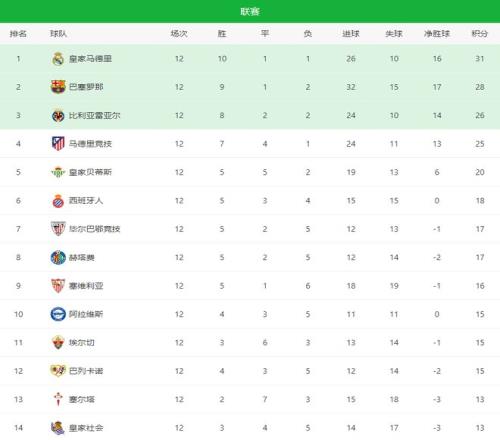 由于皇马客场爆冷0-0被巴列卡诺逼平,联赛四连胜终结,丢了2分,这样一来,银河战舰仅仅只领先巴萨3分,领跑西甲积分榜。