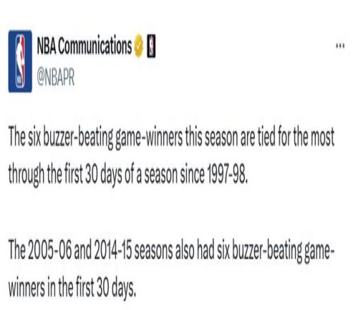如此高的收视表现,也与开季第一个月的精彩比赛有关。本赛季前30天已出现6次压哨绝杀制胜球,追平了自1997-98赛季以来的同期最高纪录。2005-06赛季和2014-15赛季的前 30 天同样各诞生过6次压哨绝杀。