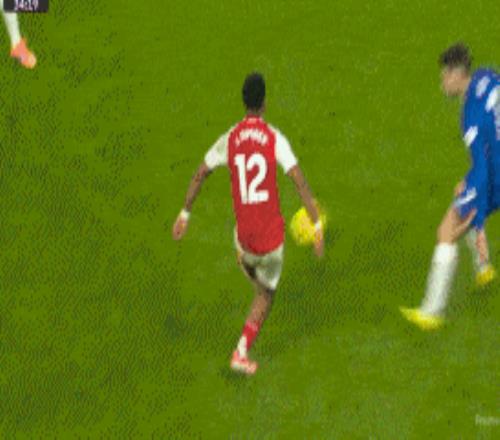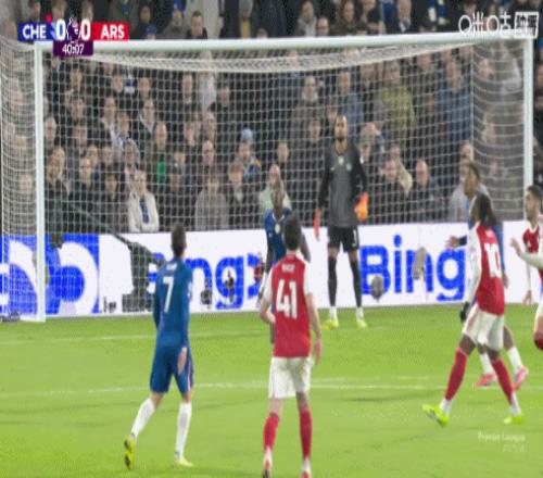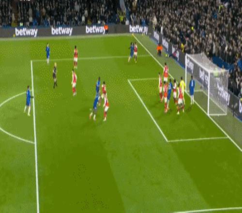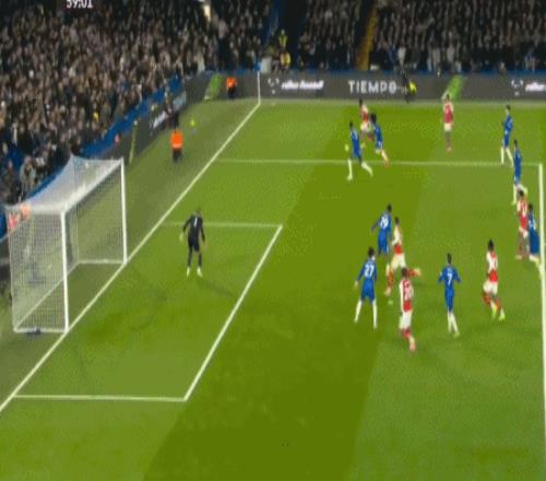 第45分钟,赖斯带球从容突破,禁区前沿倒三角回敲,马丁内利跟上打门,桑切斯飞身将球扑出,切尔西逃过一劫。