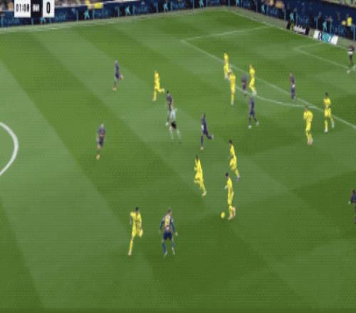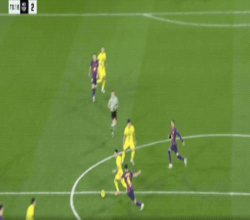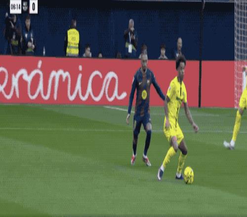 第7分钟,巴萨传球再次被断,比利亚雷亚尔如法炮制,佩雷斯张弓搭箭,拉菲尼亚和孔德合力完成关键封堵。