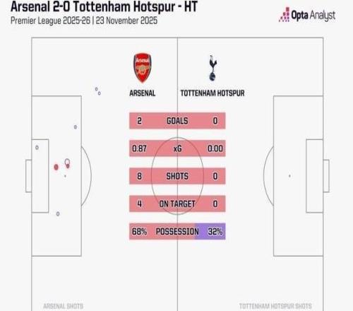 英超第12轮北伦敦德比,热刺客场对阵阿森纳,上半场战罢热刺0-2落后,且没有一脚射门,据统计,热刺是本赛季英超唯一两场比赛上半场0射门的球队。此役客场对阵阿森纳,热刺在上半场没有